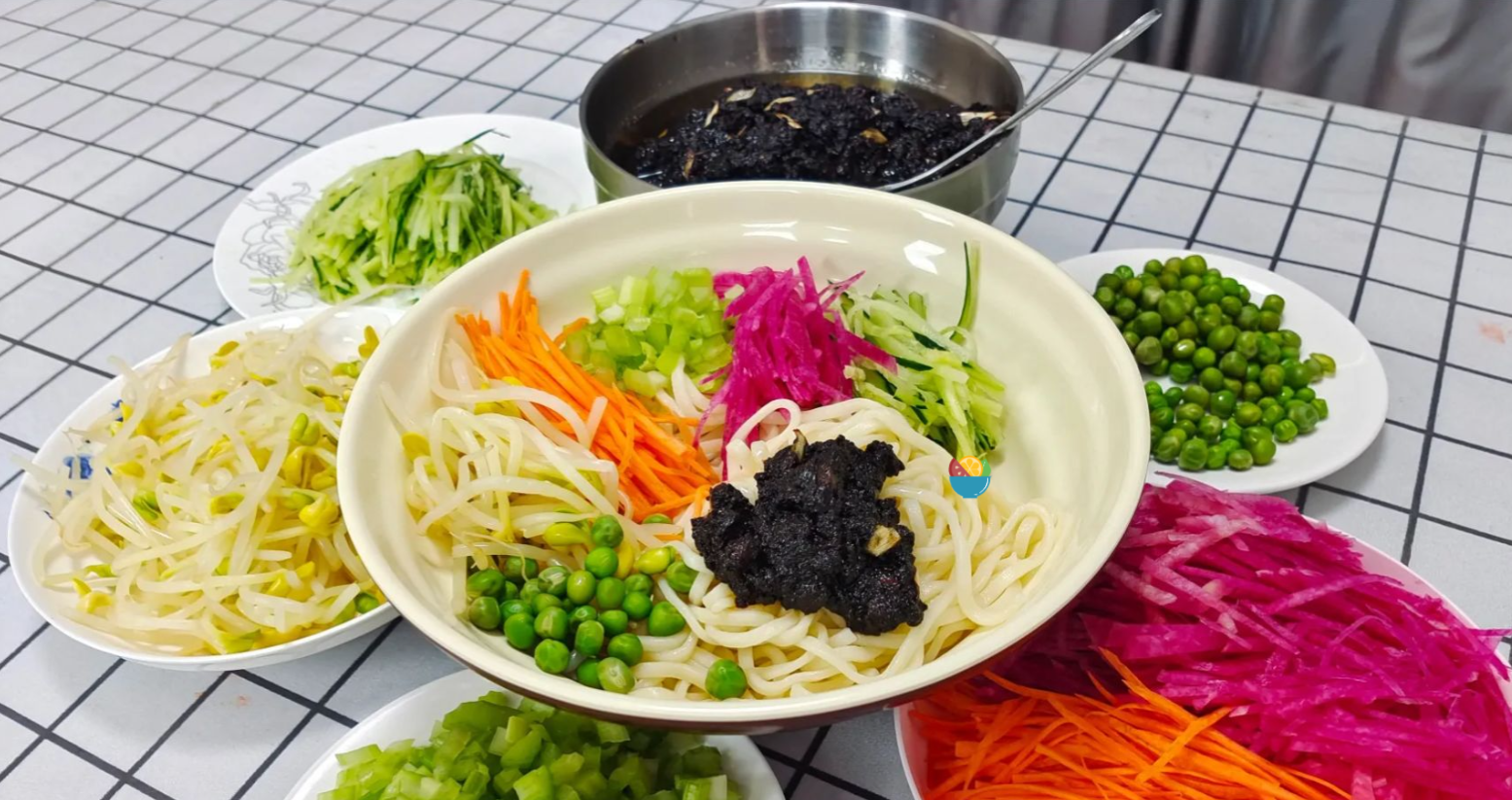 老北京炸酱面老北京炸酱面是北京市传统小吃,属北京菜系,在京津冀地区广为流传。该菜品以面条为主料,搭配炸酱与时令菜码拌制而成,核心酱料选用肥瘦相间的五花肉丁,配以干黄酱和甜面酱混合炒制,经慢火熬煮形成深褐色酱料 。面条多用手擀面或机制切面,煮熟后过水保持筋道口感 。 炸酱面的菜码包含黄瓜丝、黄豆芽、心里美萝卜丝等十余种时令蔬菜,按季节调整种类 ,食用时需搭配腊八蒜与腊八醋 [4]。其酱香浓郁的风味源自传统"小碗干炸"技法,讲究油酱分离、文火慢熬。作为北京饮食文化符号,该菜品承载着胡同市井的生活记忆,以"七碟八碗"的丰富搭配体现地域饮食特色。成品含较高碳水化合物与蛋白质,钠元素含量需特殊人群注意摄入量。2025/09/29 -